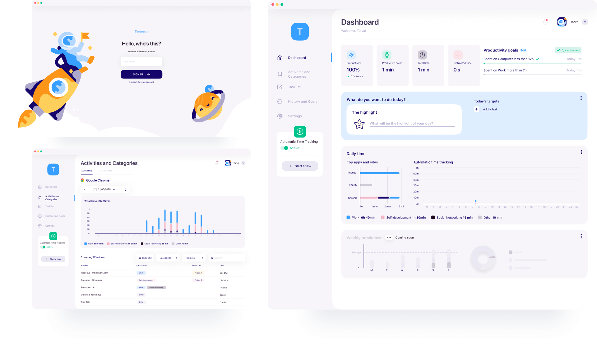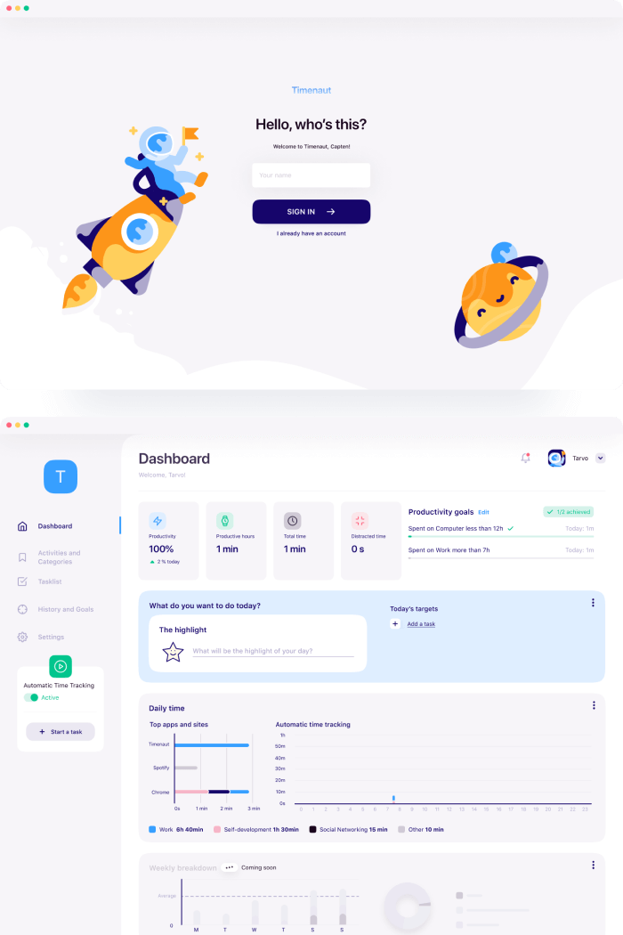Timenaut is an automatic time-tracking app, that automatically tracks the user's computer app usage.