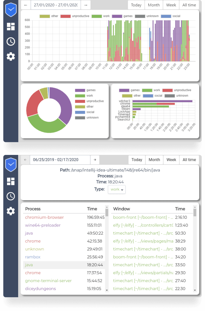 Then, Timenaut categorises the data visually so the user can see what he spent his time on during the day and how productive he was.